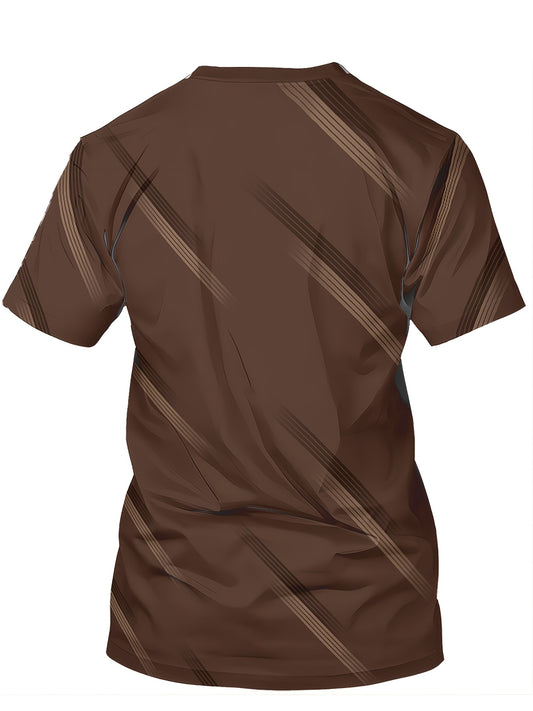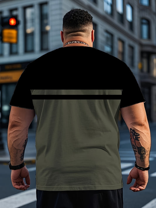 Men's Plus Size Casual 3D Printed Striped T-Shirt - Lightweight Polyester Blend, Breathable Short Sleeve Round Neck Tee for Outdoor Adventures Casual Attire, Machine Washable, Big Tall Sizes, Adventure Clothing Versatil