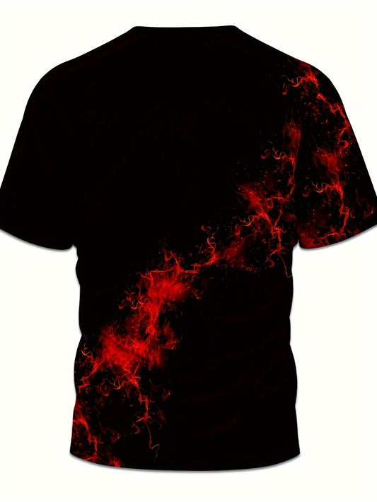 Men'S 3D Print Red Black Flame Graphic T-Shirt - Casual Short Sleeve Crew Neck Tee with Mesh Fabric, All-Season Outdoor Shirt for Adults, Everyday Tshirt Bold Graphic Tee Mesh Fabric Shirt