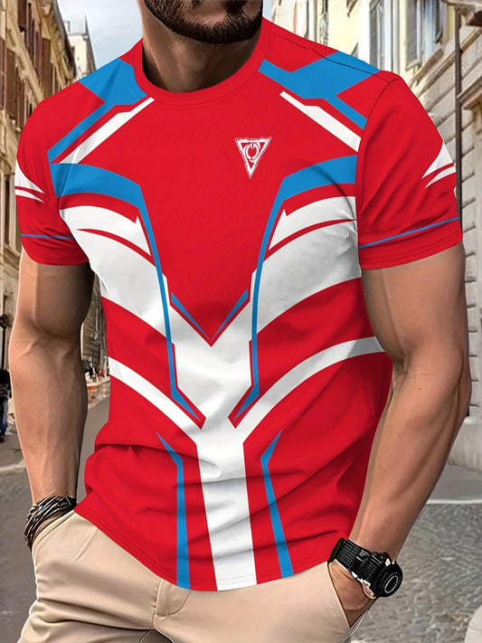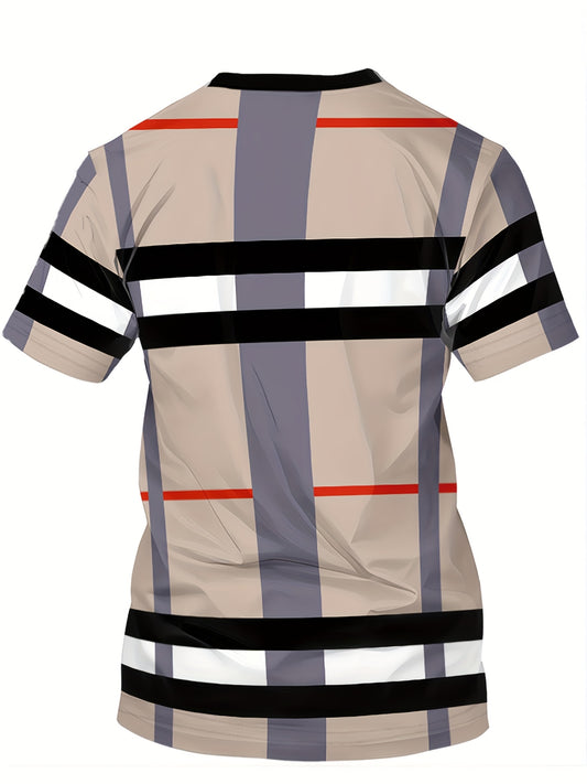 Men's 3D Digital Print Short Sleeve T-Shirt - Bold Striped Color Block Design, Breathable Round Neck, Lightweight All-Season Casual Tee, Machine Washable, Everyday Outfit, Modern Fashion, Durable Tee, Printed Shirt, Streetwea