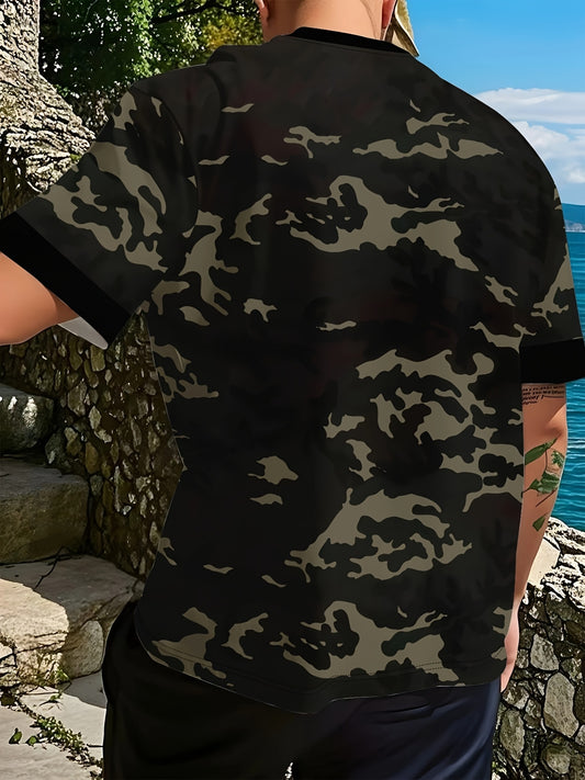 Men'S Camo Print T-Shirt - Short Sleeve, Regular Fit, Casual Style with Skull Floral Design, Black with Brown/Beige Camouflage Pattern, Perfect for Casual Attire, Everyday Tshirt Camo Print Tee Stretchable Fabric