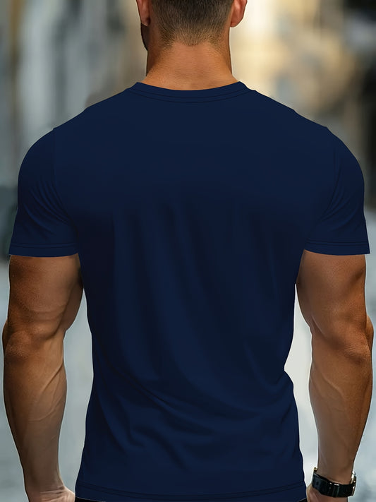 Men'S Fashion Casual Crew Neck Short Sleeve T-Shirt, Polyester Blend, Slight Stretch, Solid Color, Summer, Regular Fit, Knit Fabric, 180g/m², with Embellished Graphic for Adult