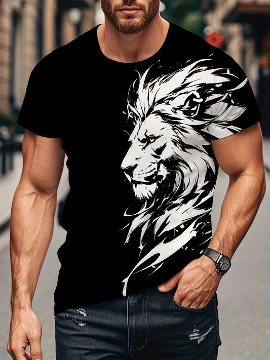 New Lion 3D Print Pattern, Casual Short Sleeve Round Neck T-Shirt, Outdoor Men's Clothing