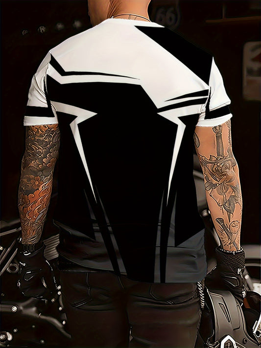Men's 3D Graphic Short Sleeve T-Shirt - Casual Round Neck Tee with Random Print, Machine Washable Non-Transparent Fabric for Casual Attire, Summer Outfit, Modern Design, Breathable Material, Printed Shirt, Young Adults