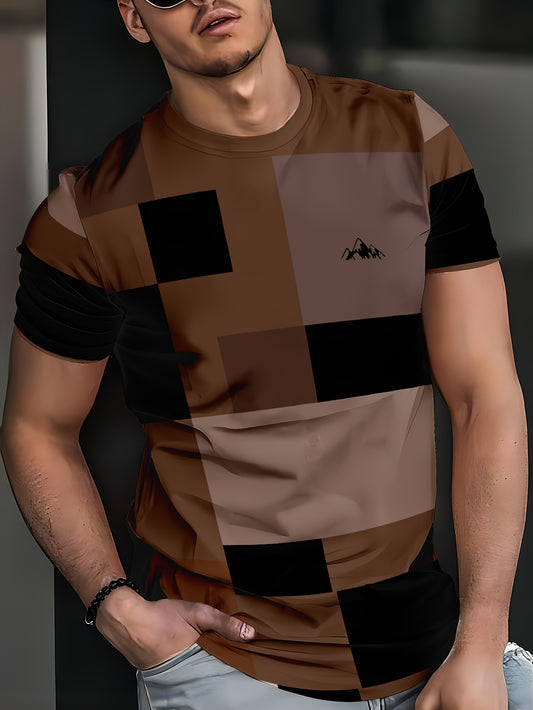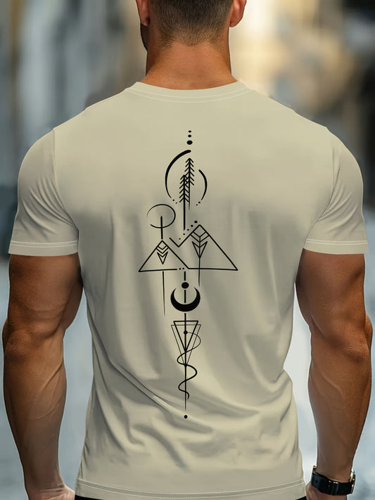 Men'S Beige Geometric Print T-Shirt - Casual Crew Neck, Slight Stretch Fabric, Modern Design with Striking Patterns, Everyday Tshirt Modern Tshirt Comfortable Fit