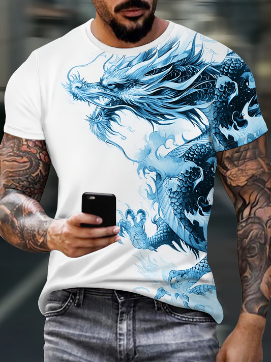 Men's Bold Dragon Graphic Tee - Short Sleeve, Crew Neck, Polyester Blend - Perfect for Summer Outings Casual Wear