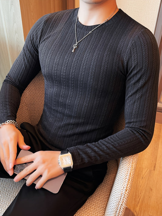 Men's Slim-Fit Long Sleeve T-Shirt - Casual Stylish, Perfect for Fall/Winter, Machine Washable