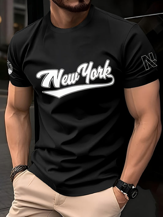 1pc Men's Summer Breathable Quick-Dry T-Shirt - 100% Polyester Moisture-Wicking, Casual Short Sleeve Round Neck Tee with New York Graphic Print for Outdoor Sports Casual Attire