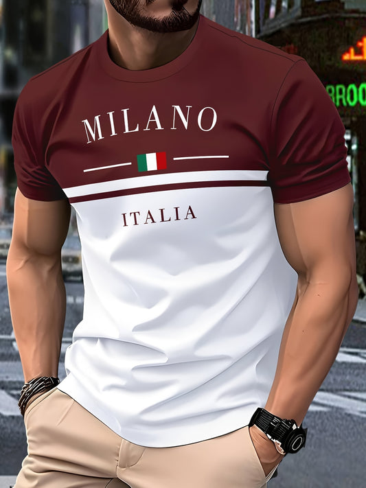 Men's Milan Italy Graphic T-Shirt, Black White Color Block Design with Italian Flag Print, Casual Crew Neck Short Sleeve Tee for Summer, Perfect for Outdoor, Sports Fitness, Italian T Shirt, Durable Fabric