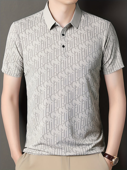 Men'S Casual Summer Short Sleeve T-Shirt with "Gil" Letter Print, Light Gray, Button-Up Collar, Medium Stretch Fabric, Regular Fit, Perfect for Weekend Outings, Relaxed Outing Shirt Letter Print Tee Medium Stretch Fabric