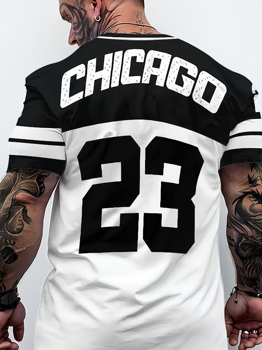 Men'S Chicago 23 Graphic Tee - Breathable Lightweight 3D Print T-Shirt, Breathable Polyester, Casual Round Neck Top, Non-See-Through, Fashionable All-Match Design, Comfortable for All Seasons, Casual Wear Sporty Chicago 2
