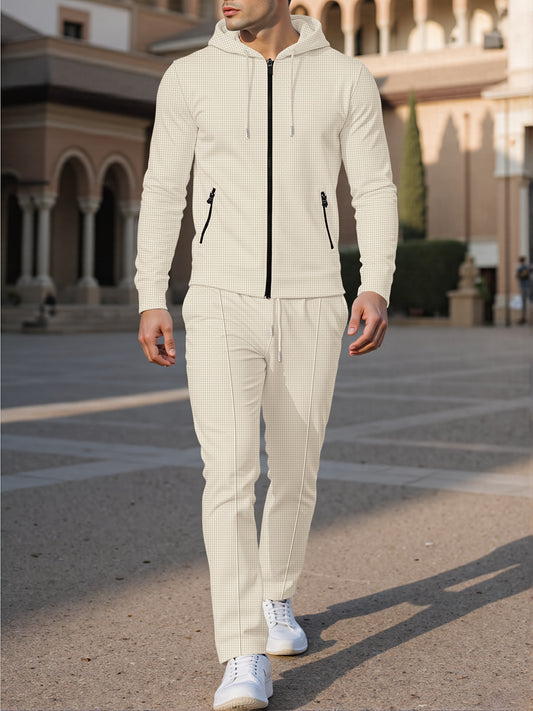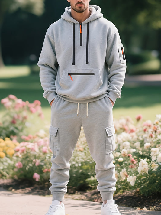 New Style Autumn Men's 2pcs Set, Casual Hooded Long Sleeve Zip-Up Sweatshirt and Drawstring Jogger Pants with Pockets, All-Season Outfit for Men