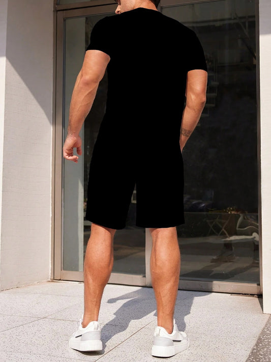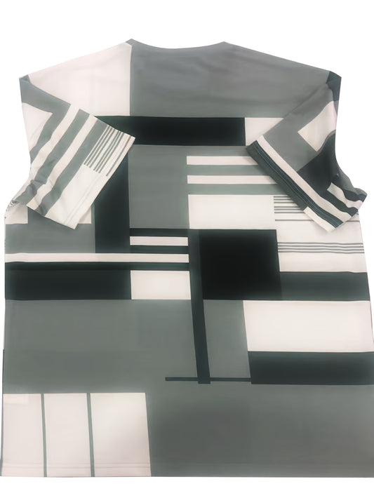 Men'S Casual Geometric Sweat Suit - Sporty Polyester Blend, Crew Neck, Short Sleeve, Regular Fit, All-Season Track Suit