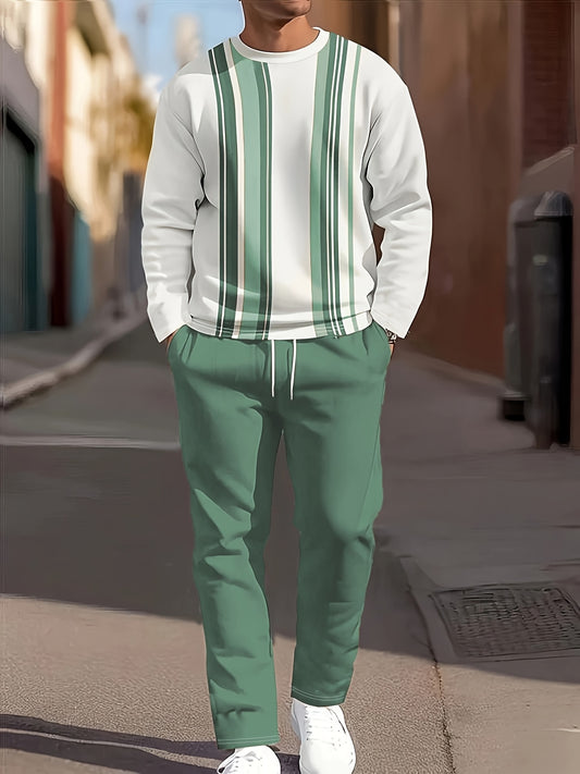 Men's Casual Fashion Round Neck Sweatshirt & Joggers Set - Polyester, Machine Washable, Printed Design for Spring/Fall