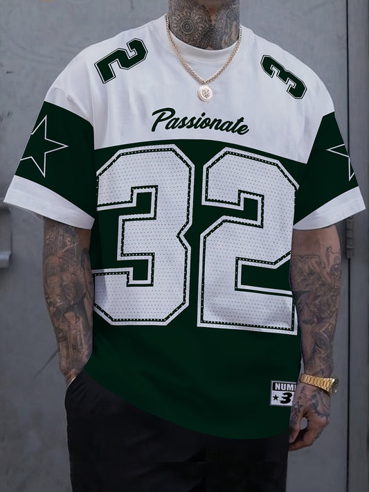 Men'S Summer Casual Crew Neck T-Shirt - Short Sleeve, Print Number 32 Design, White Black Contrast, Regular Fit Casual Top for Casual Attire, Leisure Clothing Contrast Color Top Comfortable Fit
