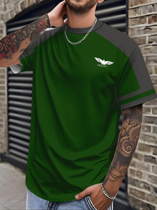 Men'S Casual Short Sleeve T-Shirt - Breathable Summer Tee with Crown Wings Graphic, Regular Fit Round Neck, Lightweight Comfort for Casual Attire, Comfortable Clothing Stylish Casualwear Breathable Fabric