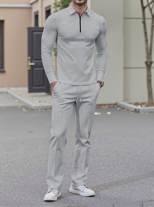 2025 collar half zipper long sleeved two-piece set, collar zipper allows for free breathing, casual pants to wear, knitted fabric is softer, multi color and multi style, Men's solid color is simple and not simple.