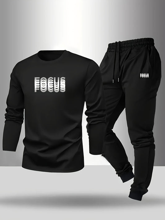 Men'S Casual Sportswear Set - Black Zip-Up Jacket & Pants with White Logo, Regular Fit, Spring/Fall Collection, Non-Stretch Fabric, Casual Attire|Zipup Jacket|Pants with Logo, Sweater Pants