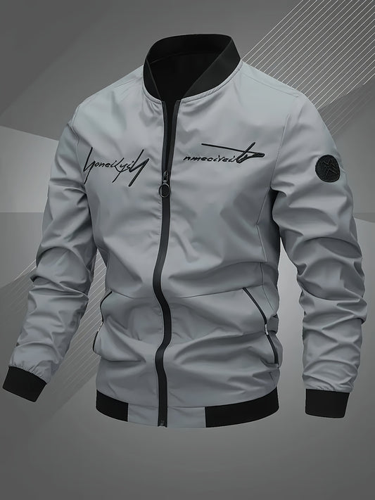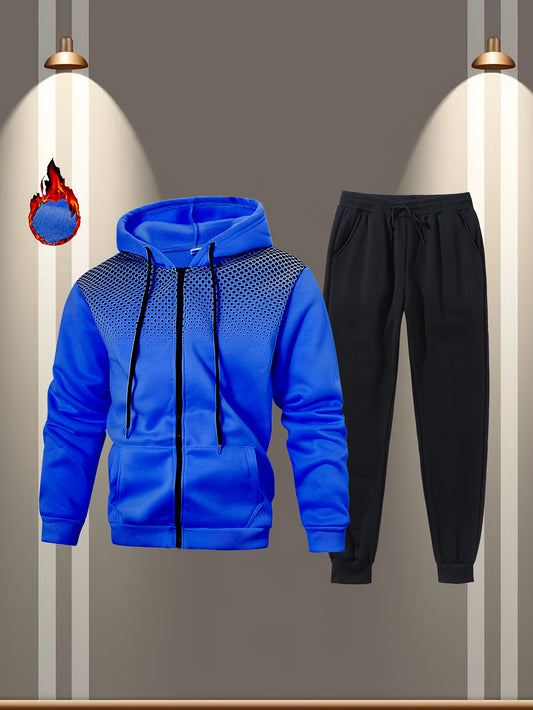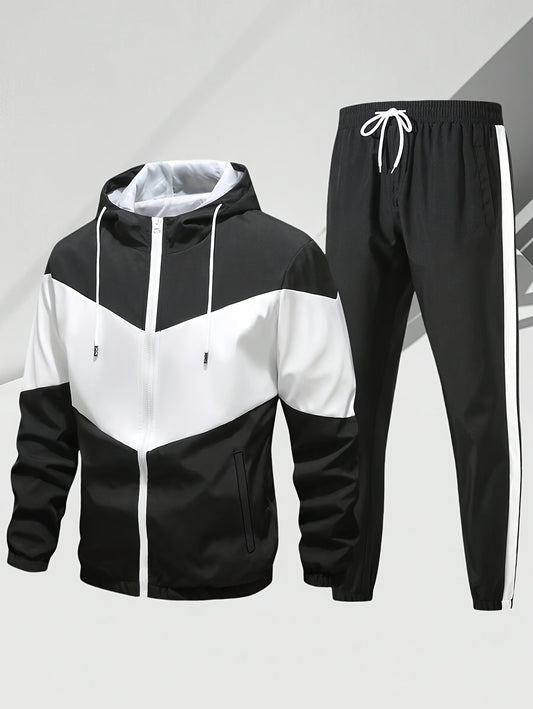 Men's Sporty Color Block Zip-Up Jacket & Joggers Set - Polyester Blend, Perfect for Spring/Fall