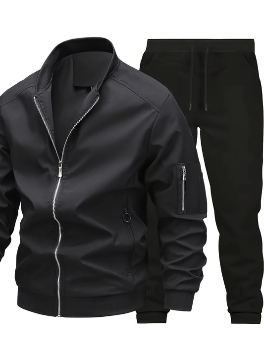 New Men's Two-piece Suit Classic Flyer Jacket and Jogging Pants Set