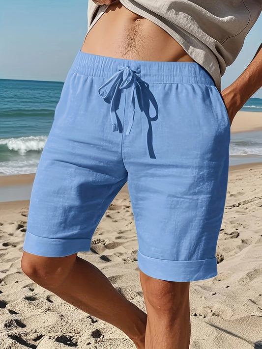 Men'S Light Blue Linen Shorts - Casual & Comfortable with Pockets, Drawstring Waist, Perfect for Summer Beach Outings and Casual Attir