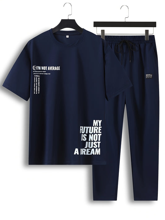 Men's 2pcs Summer MY FUTURE IS NOT JUST A DREAM Casual T-Shirt and Pants Set - Suitable for Casual Sports Outing - Starry OB