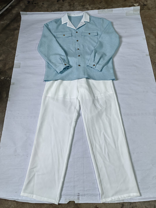 New Men's Colorful French Stripe Short Sleeve Shirt and Trousers Set