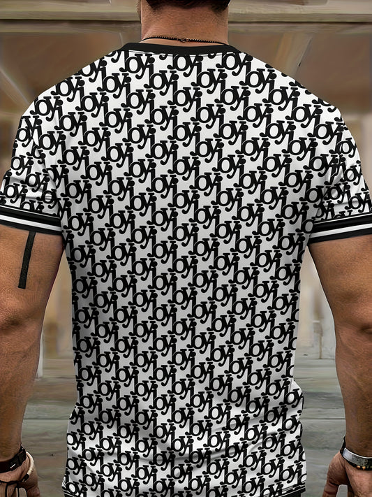 Men'S Casual Polyester Crew Neck Embroidered Alphabet Pattern Slight Stretch Knit Fabric Regular Fit Lash Sets for Spring