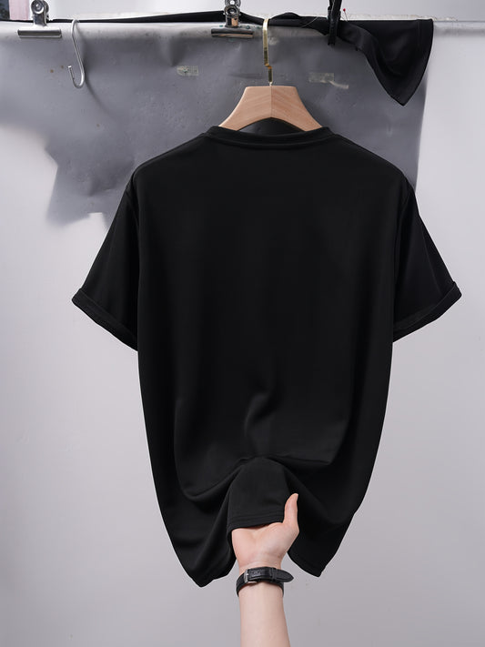 Men's Paris Letter Graphic T-Shirt - Black with Red Print, Breathable Polyester Round Neck Streetwear Tee for Summer, Casual & Outdoor Wear, Outdoor Clothing | Trendy Tshirt | Relaxed Fit Shirt