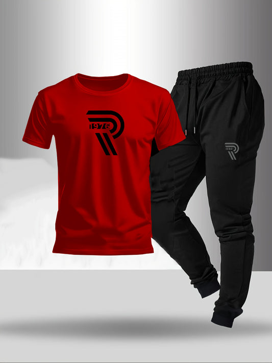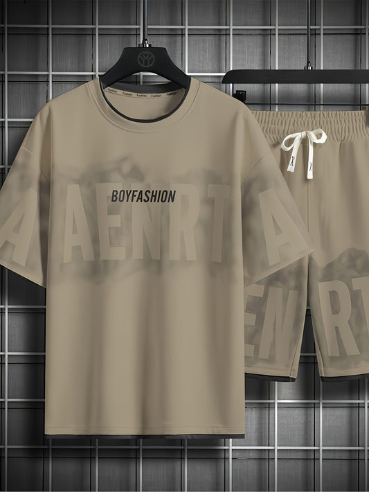 A fashionable letter print design T-shirt set, featuring a combination of round neck, short sleeves and shorts, is casual, simple, comfortable and soft. It is a two-piece set for Men's summer daily casual wear