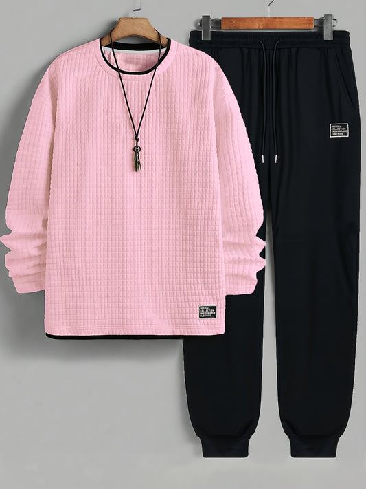 Men's Casual Crew Neck Sweatshirt & Joggers Set - Color Block, Polyester Blend, Machine Washable - Perfect for Spring/Fall, Leisure Style, Conventional Version, Spring/Autumn