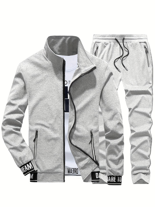 New Spring and Autumn Men's Sports Casual Suit, Trendy Fashion Stand-up Collar Long Sleeve Jacket Two-piece Set