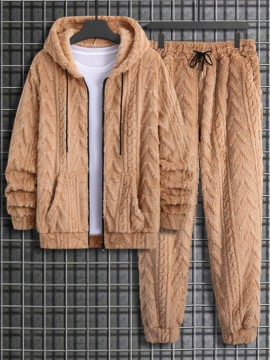 Men's Autumn and Winter Casual Loose Couple Hoodie Set, Stylish Sweatshirt with Long Pants Outfit