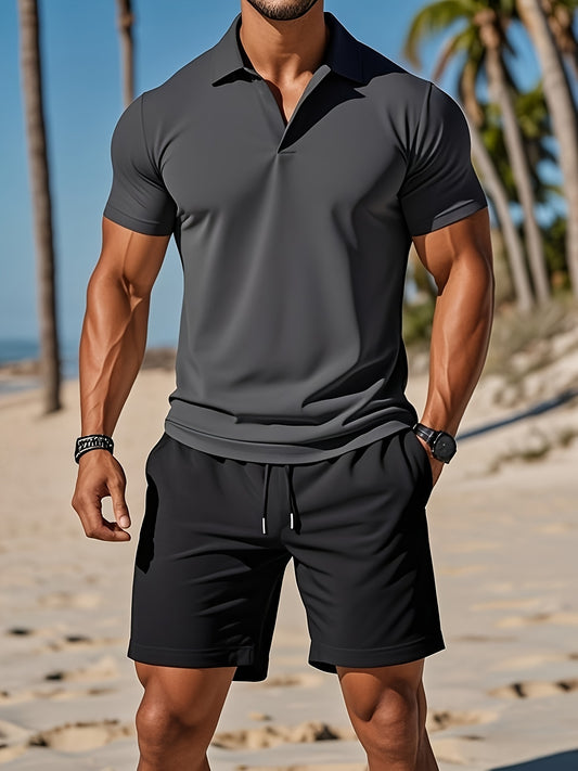 Bechimai Custom Men'S Solid Color Turn- Collar Summer Fresh Suit Double- Shirt Fabric Short-Sleeve Shirt and Shorts Casual Summer Set