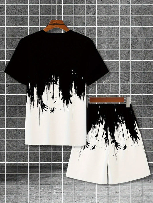 Men's Printed Short Sleeve T-shirt + Shorts Set Casual Sports Suit Breathable Outdoor Leisure Men's T-Shirt Five-Pants Set Summer 3D Printing Set Adult Male