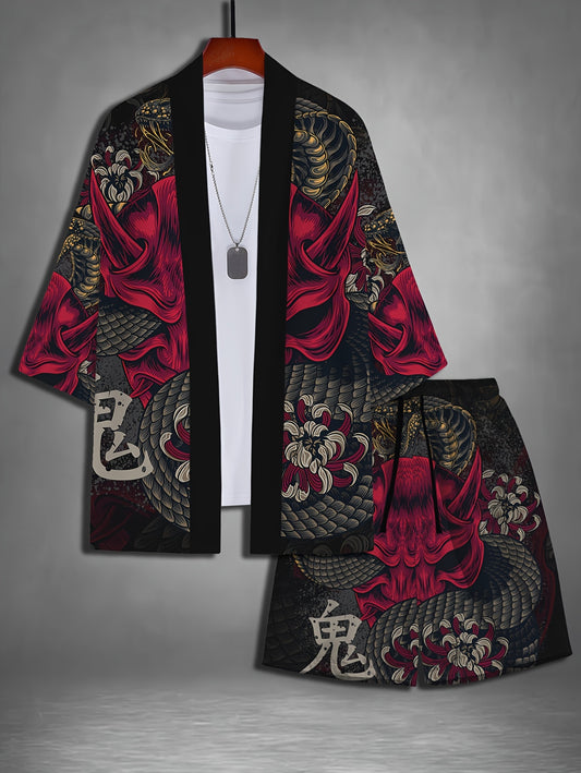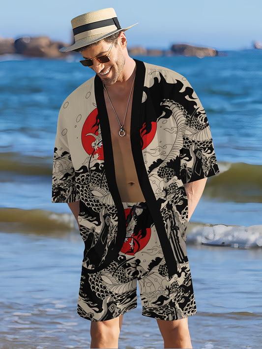 Men's Japanese Style Print Kimono Shorts Home Wear Casual Vacation Set