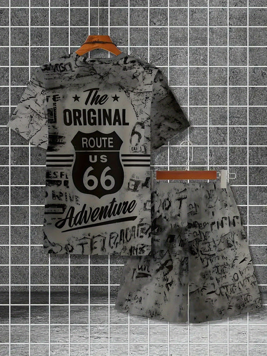 Summer Men's Casual Sports Set of 2, Trendy Round Neck Short Sleeve T-shirt + Shorts