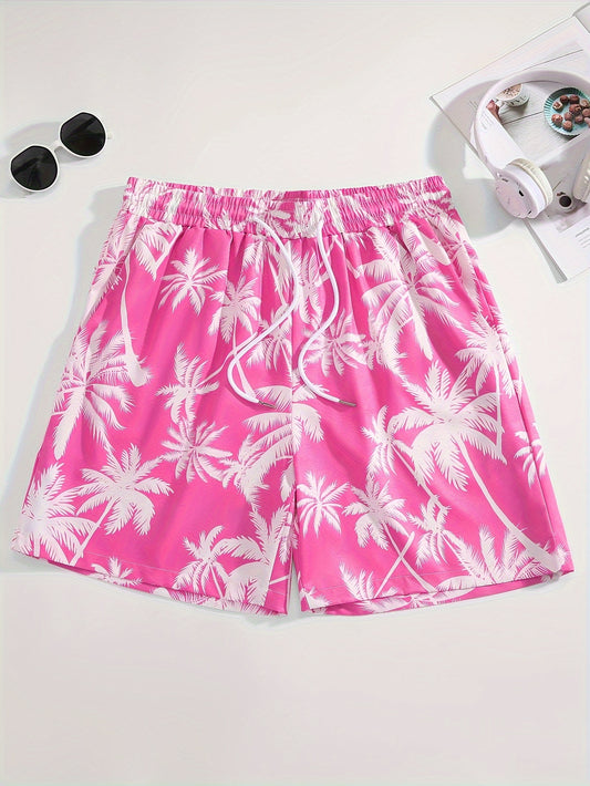 Men's Tropical Coconut Tree Print Drawstring Shorts - Casual, Loose-Fit Beachwear with Pockets