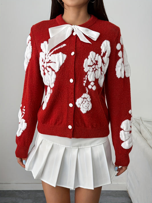 Women'S Red Sweater - Long Sleeve Button-Front Cardigan with Elegant Loose Fit, Round Neck Winter Sweater for Everyday & Formal Outfits, Non-Transparent Fall/Winter Sweater for Casual Formal Events, Winter Sweater, Seasonal F