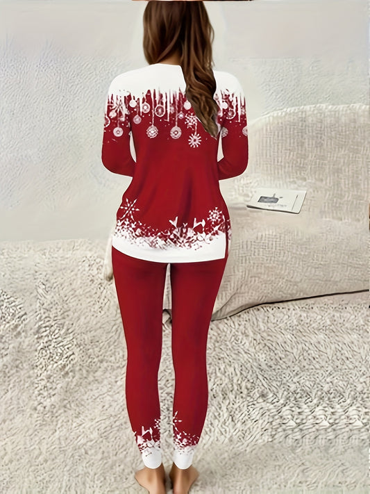 Women's Autumn/Winter Home Wear Soft Warm Fashion Christmas Snowflake Long Sleeve Pants 2pcs Set