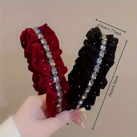 1/2pcs New Style Velvet Ribbon Hairband with Rhinestone Chain & Fold Design for s' Casual Attire