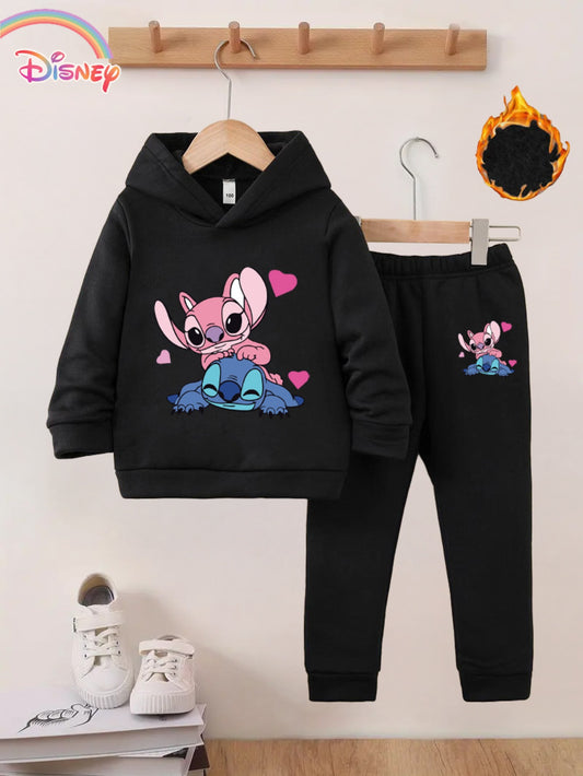 Series Stitch Girls' Two-Piece Autumn Winter New Hoodie Set - Available in Multiple Colors, Cartoon Print Embellishments, 3-10 Years Old, Outdoor Activity Fleece, for Outdoor, Thick