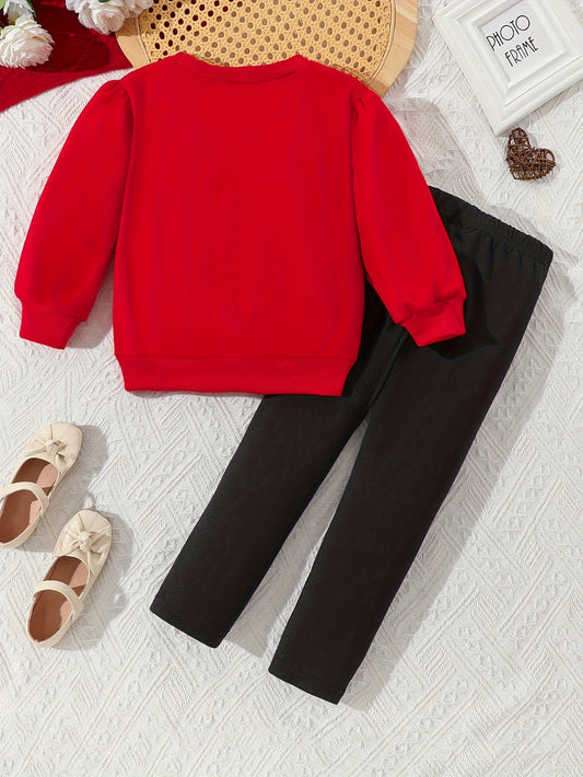 2pcs Girls' Long Sleeve Christmas Santa Claus Letter Print Irregular Skirt + Pants Set, Holiday Outfit, Seasonal Clothing, Festive Design, Elegant Style, Quality Stitching, Comfortable Fit, Twopiece Outfit, Matching Set, Holi