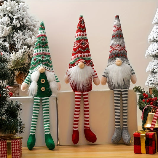 3pcs Striped Long-Leg Knitted Hat Gnome Figurines, Red-Green-Gray-White Color Scheme, Perfect for Christmas Decorations, Thanksgiving, New Year, Home & Hotel Holiday Atmosphere Display, Christmas Decoration Outdoor, Christmas