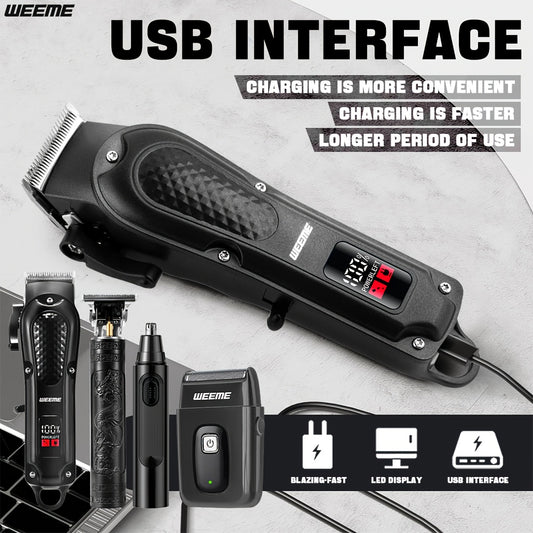 WEEME 2pcs/3pcs Men's grooming suit Multi-function electric hair clipper shaver trimmer alloy steel head three-gear adjustment USB fast charging LCD power display household travel car must-have gift for husband, boyfriend and