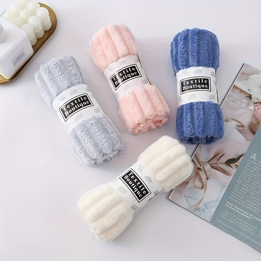 4pcs Striped Ultra-Soft Coral Bath Towel Set - Quick-Drying, Super Absorbent, Solid Colors - Durable and Odorless, Light Tones in Pink, Blue, Light Gray, White, Ideal for Spas, Gyms, and Home Use, Also Suitable for Showers an