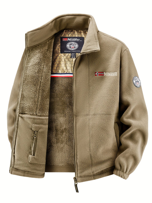Men's Warm Stand Collar Cardigan Jacket, Honeycomb Heat-Retaining Graphite Lining, Thermal Insulation, Warmer Upper Body, Quality Men's Wear, Warm Lining, Carbon Fiber Technology - Full-Zip Winter Coat, Full-Length Zipper, Ma