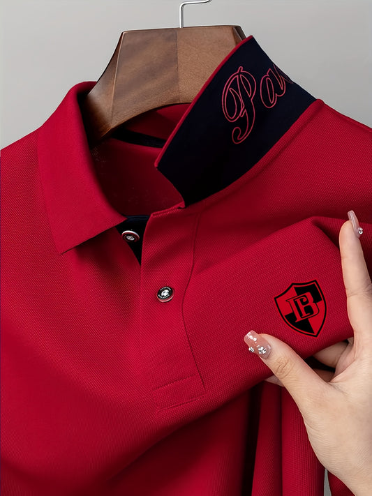 Men'S Fashion Short-Sleeve POLO Shirt | Contrast Rib-Knit Collar with 3D High-Frequency Print | Casual Style, Regular Fit, Summer Season