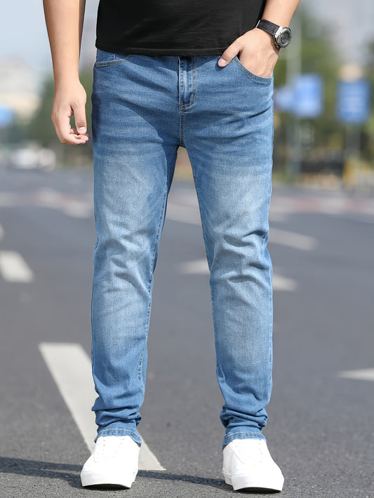 Men's Washed Jeans - Solid Color Casual Straight-Look Pants, Machine-Washable All-Season Fit for Casual Attire & Smart-Casual Outfits (Regular Length)