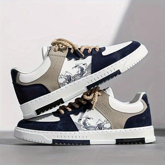 Men's Chic Street Style Color Block Skateboard Shoes, Comfortable Anti-slip Laced Casual Sports Shoes, Suitable for Men's Outdoor Activities, Men's Shoes