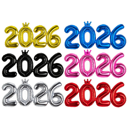 2026 Number Balloon Set | Hengyue Crown Connected Number Aluminum Film Balloon, Ideal for New Year, Christmas, Wedding Anniversaries, Valentine'S Day, Wall Decor, Festive Photo Props, Easy to Inflate, Multiple Colors Availabl